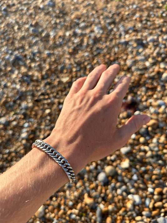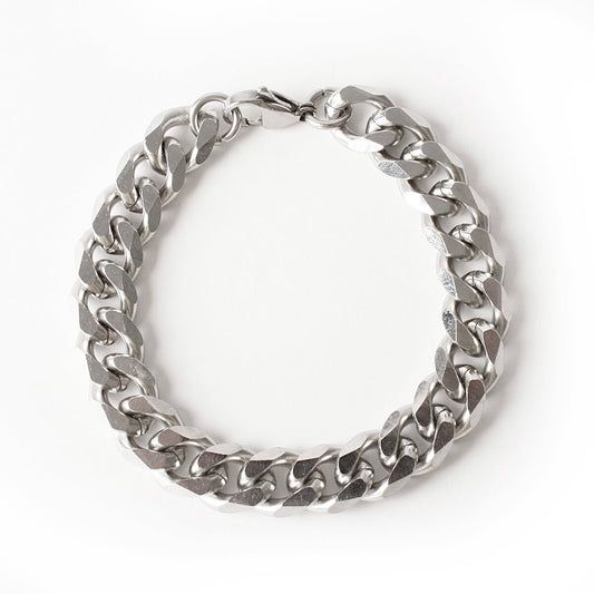 Silver Stainless Steel Cuban Chain Bracelet 11MM
