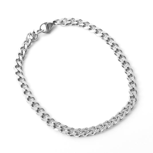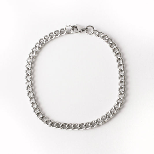 Mens Silver Tight-Link Cuban Bracelet 4mm