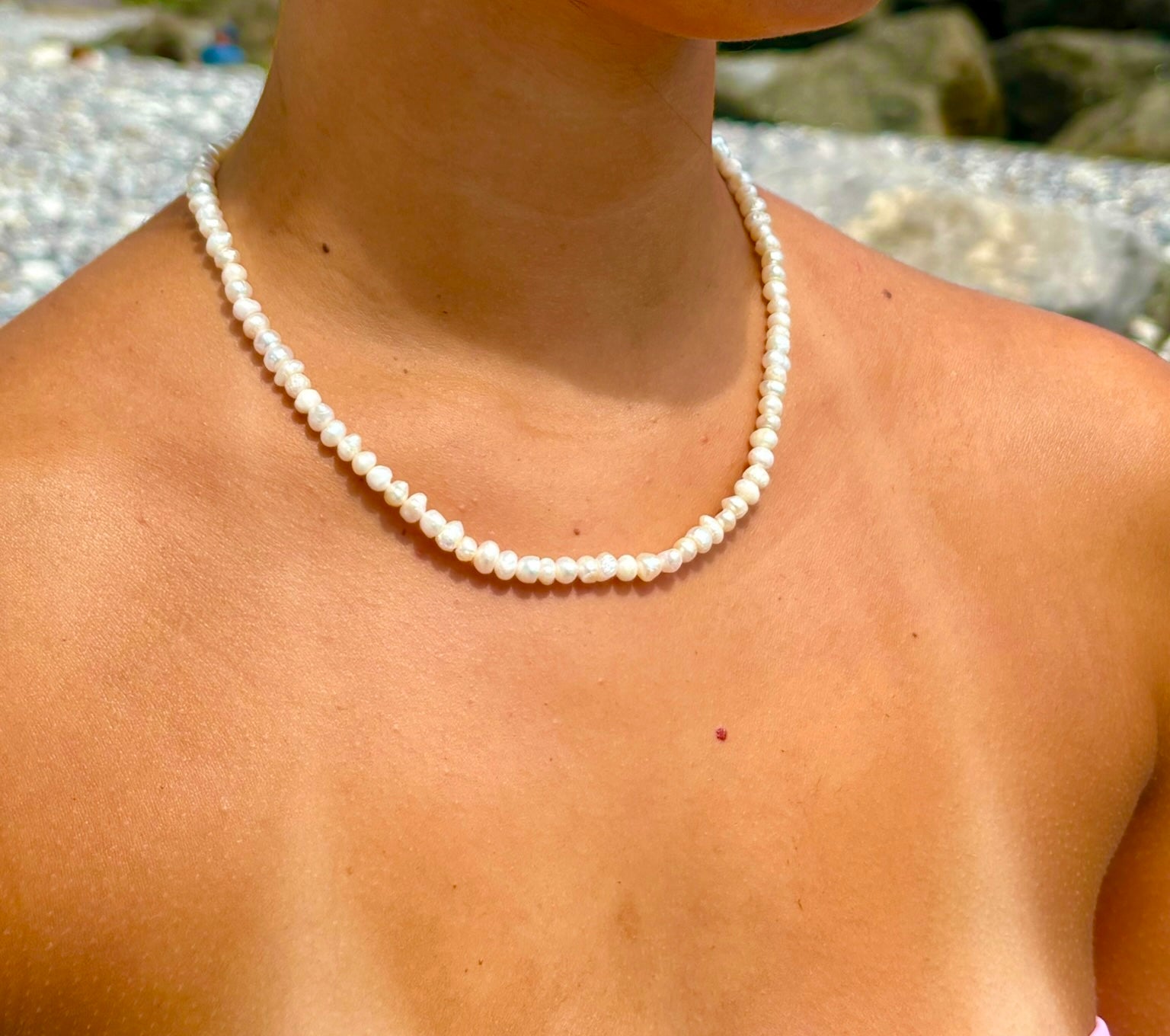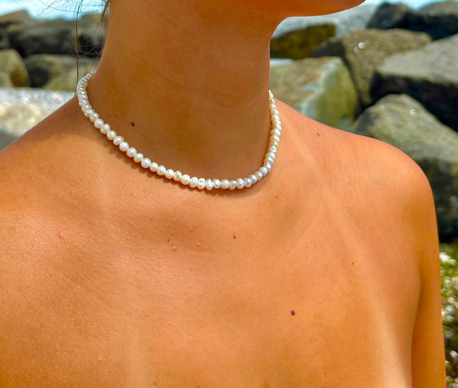 OceanJewels Natural Freshwater Necklace is made from 100% Real Freshwater Pearls and high-quality stainless steel, making it fully waterproof, tarnish-proof, and guaranteed to last a lifetime! Wear it anywhere! In the sea or shower without ever taking it off. 🌊