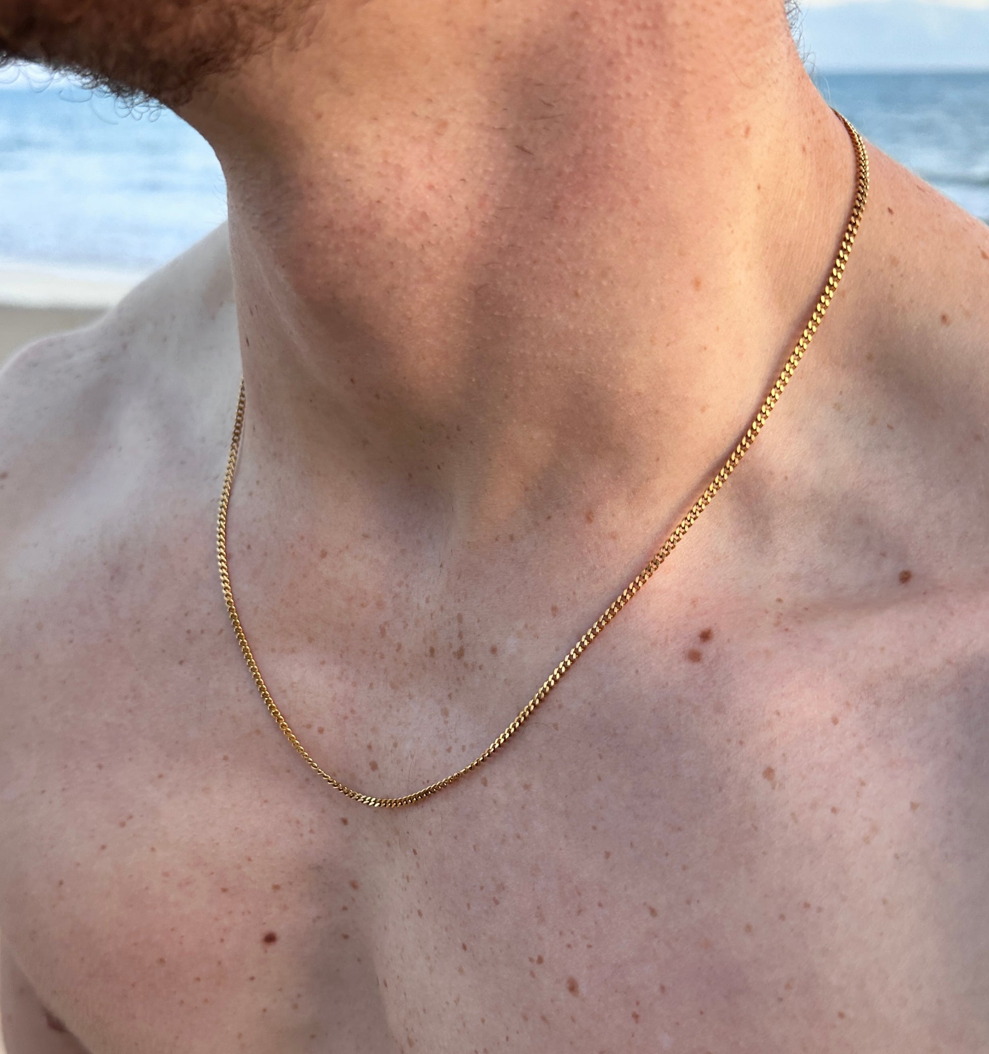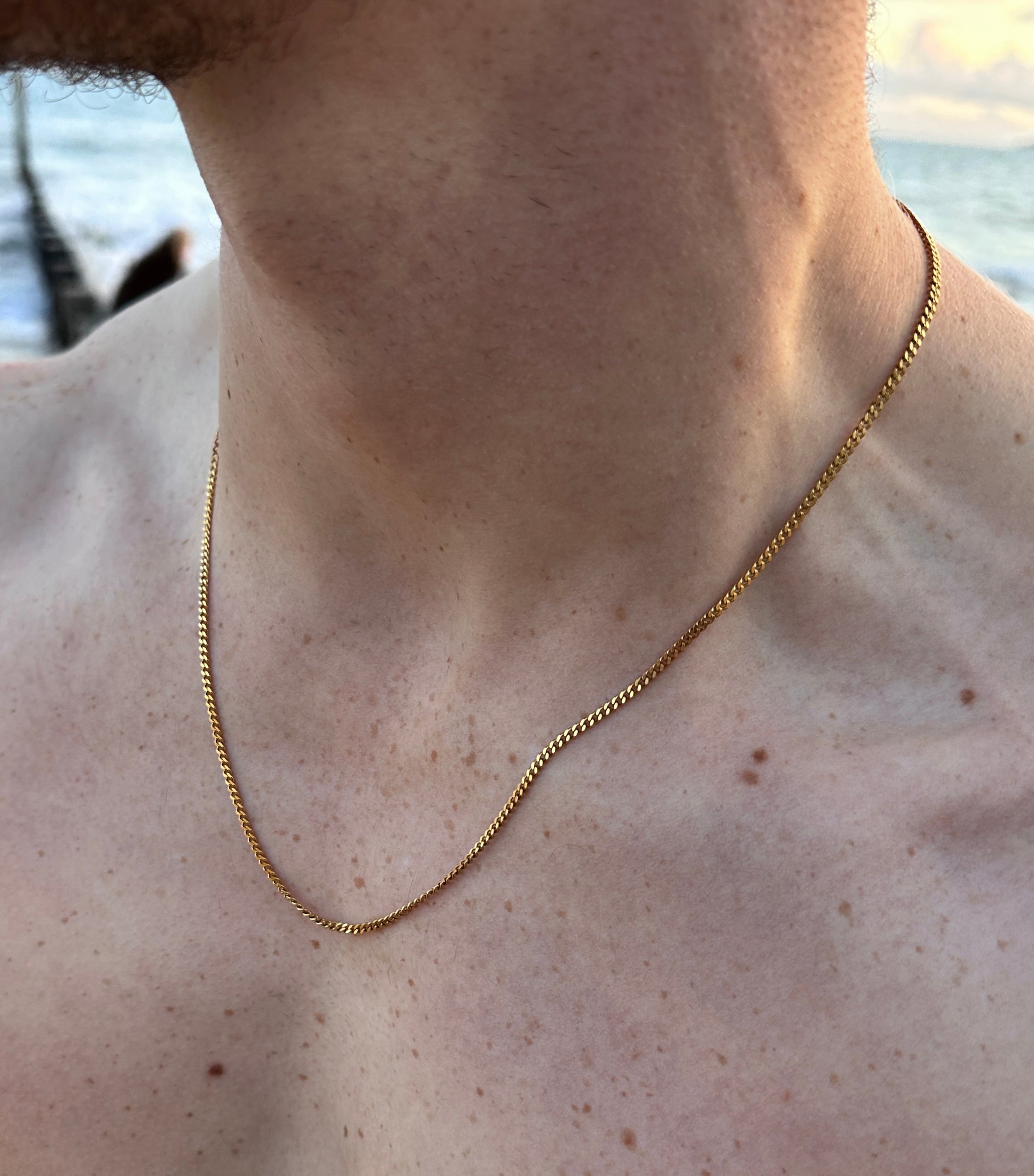 The Gold 2mm Connell’s Cuban necklace. A stylish piece to wear with passion, combining a stylish look with a feeling of Connell’s empowerment from a popular tv show normal people.