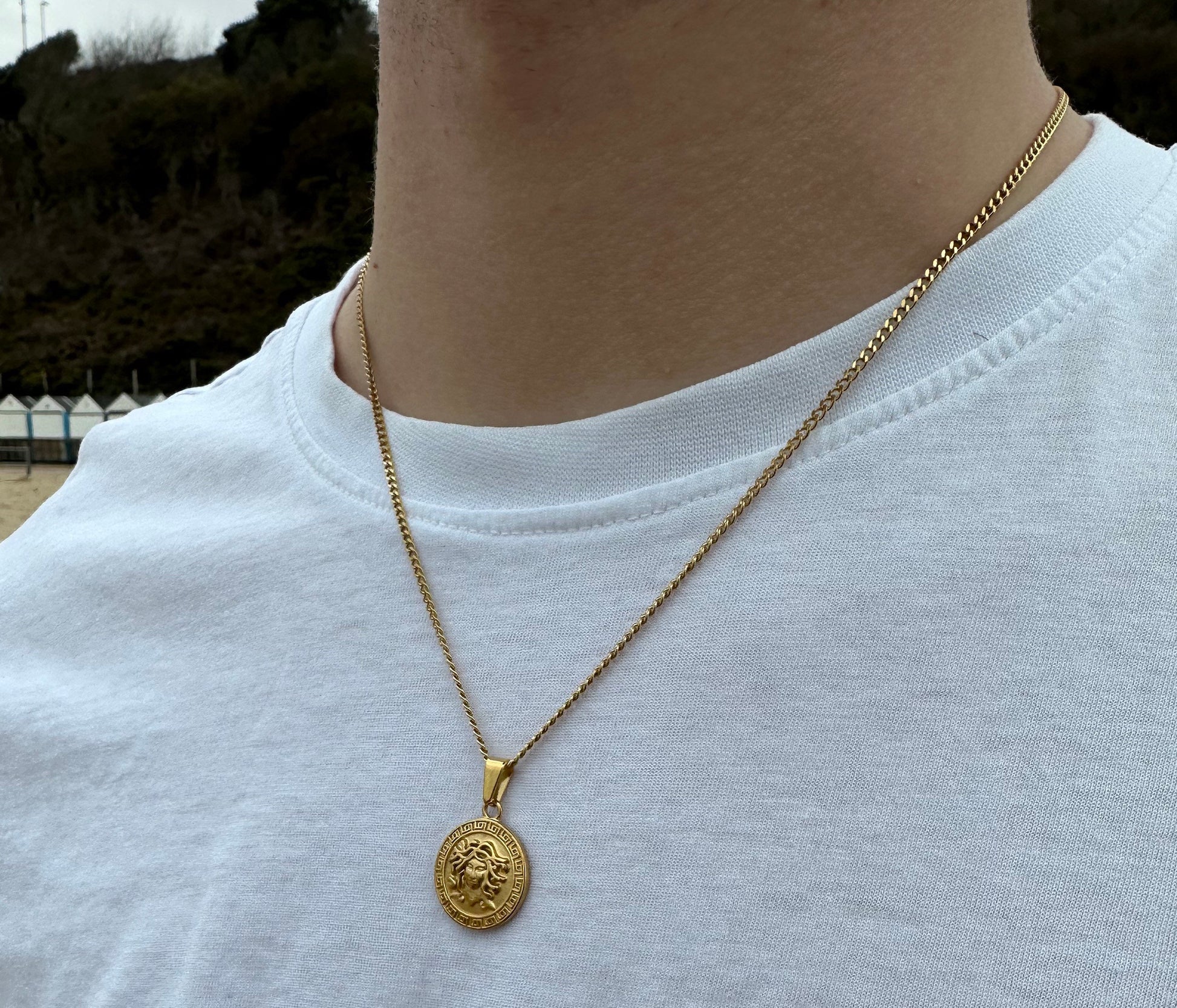 OceanJewels Medusa Pendant Necklace made of high quality 316L stainless steel with a 2mm Cuban chain available in