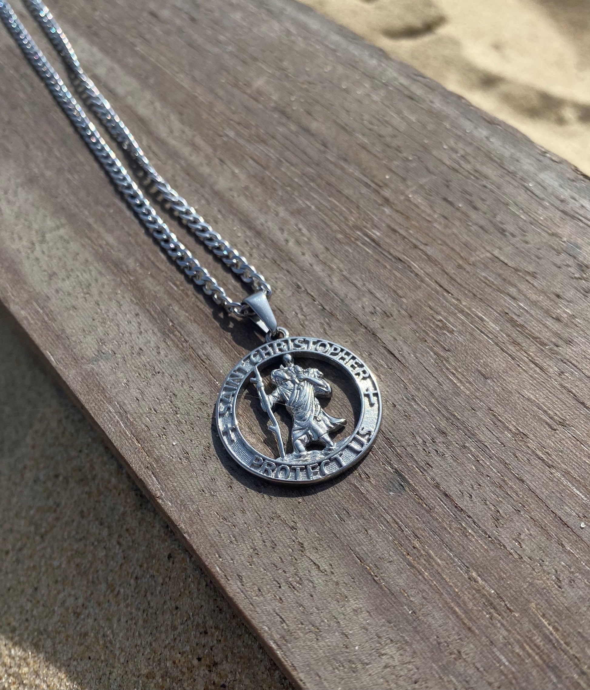 Saint Christopher necklaces are worn as a symbol of safe travel and protection. And since St. Christopher saved travelers from a watery death, mariners wore Saint Christopher medals for protection and safe passage at sea.