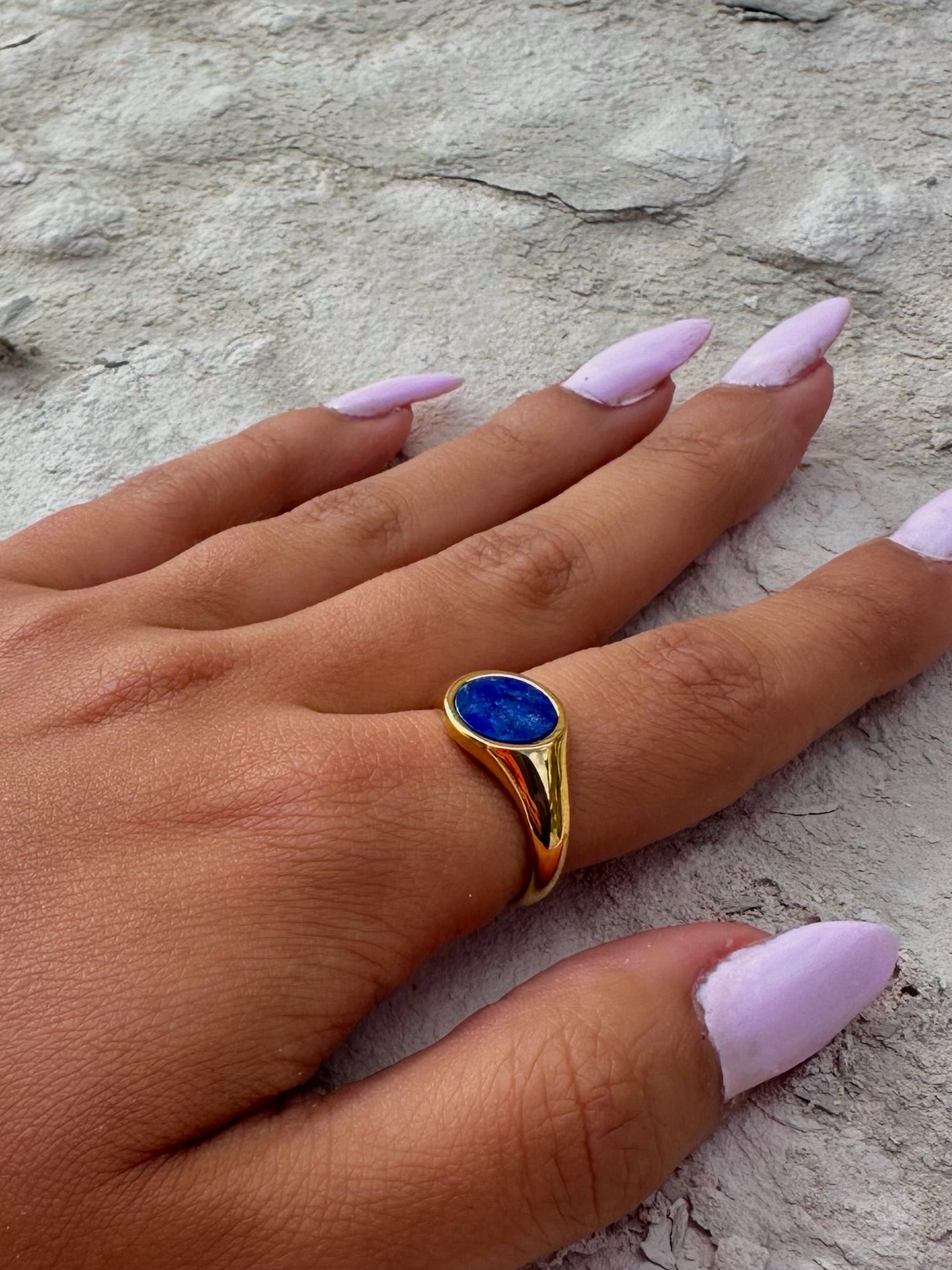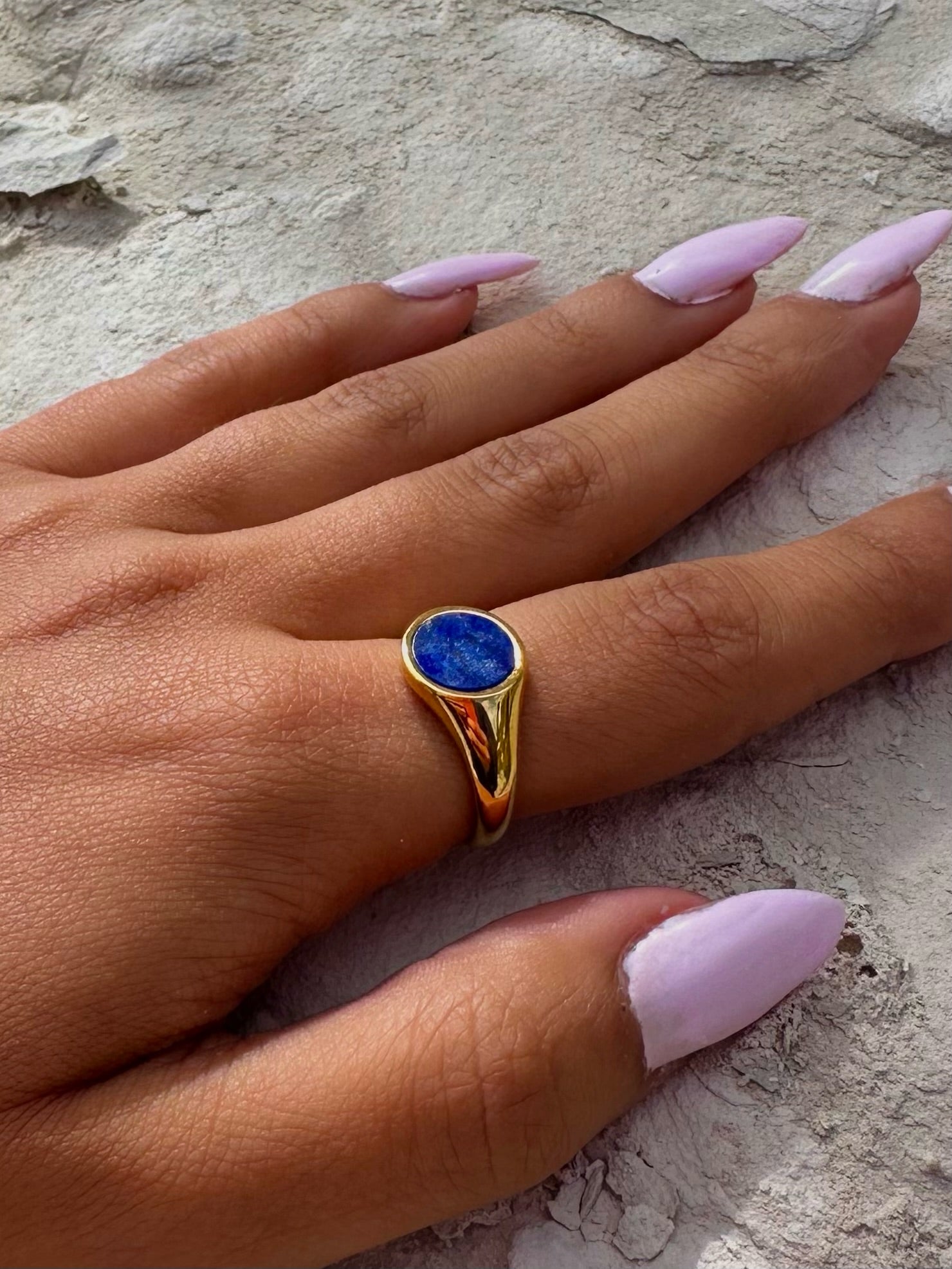 OceanJewels Lapis Lazuli Signet Ring is made from high-quality stainless steel Premium Plated in Real 18K Gold! Making it fully waterproof, tarnish-proof, and guaranteed to last a lifetime! Wear it anywhere! In the sea or shower without ever taking it off. 🌊