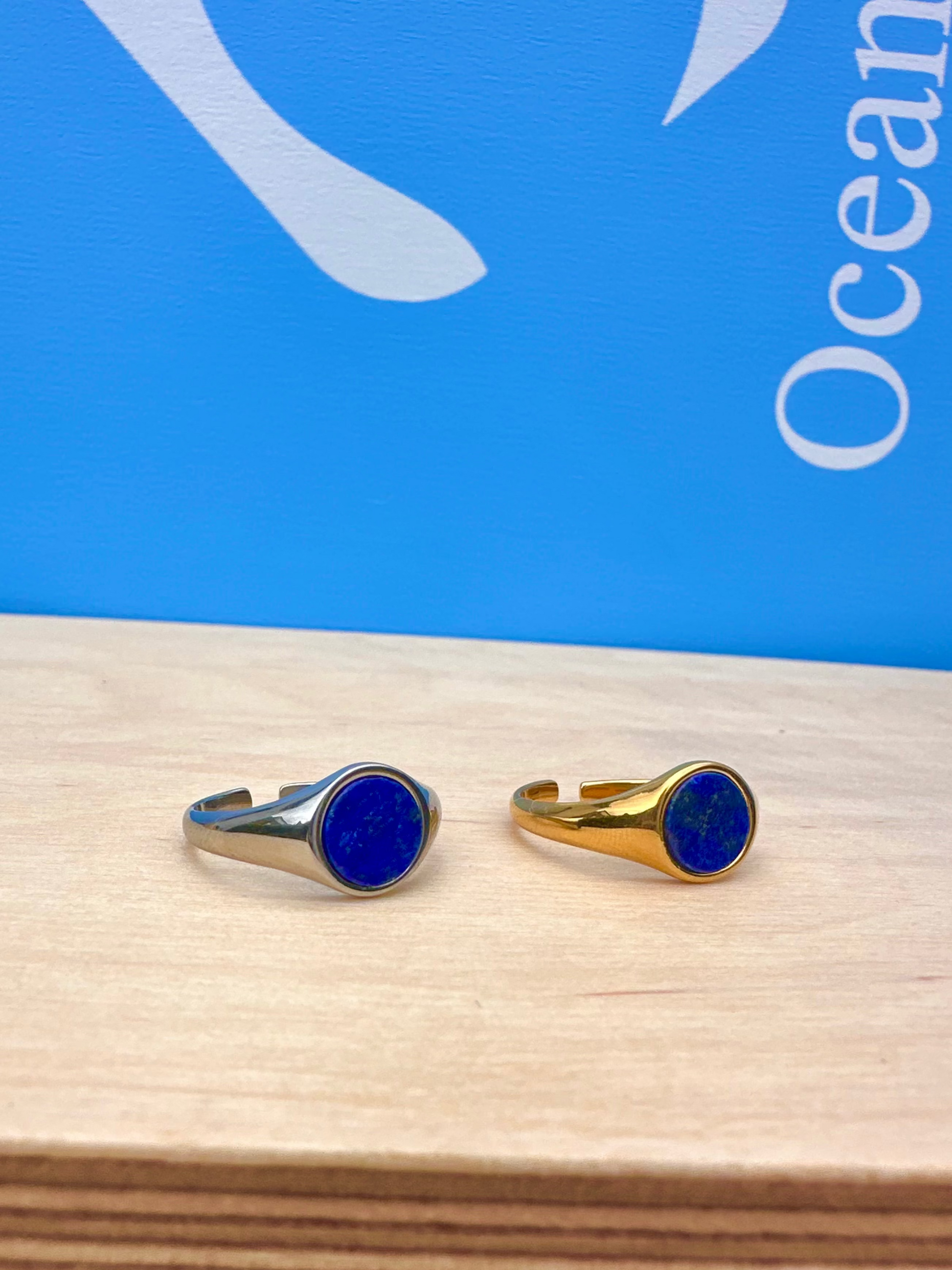 The ring is embedded with a real natural Lapis Lazuli Stone!