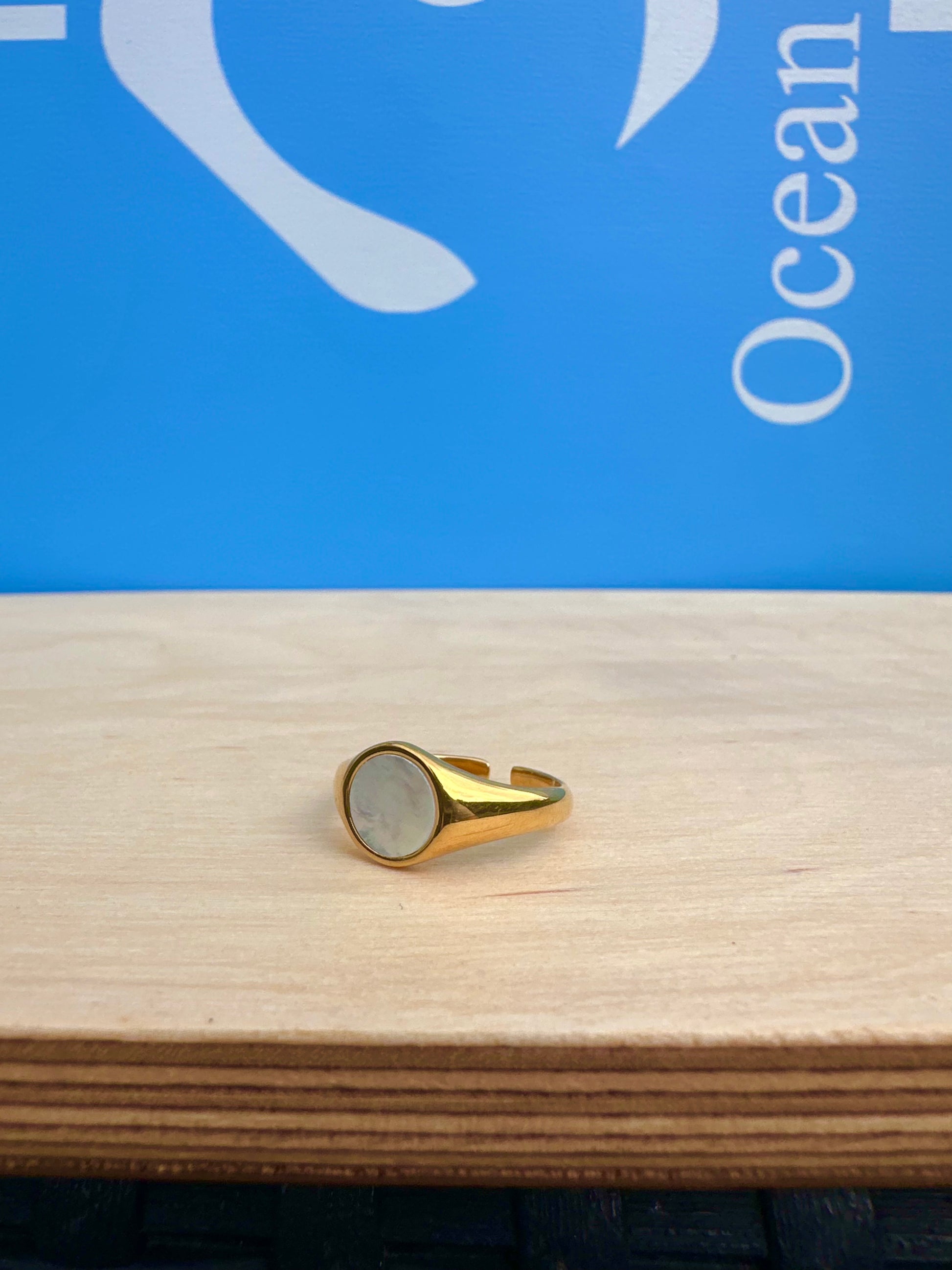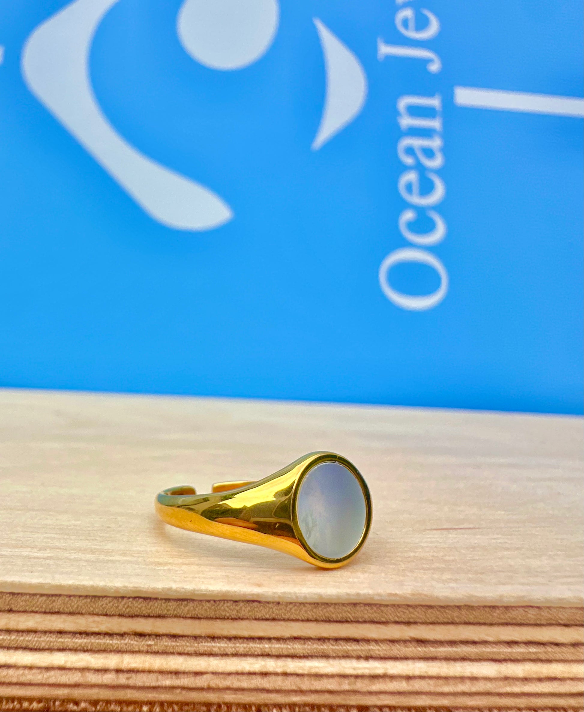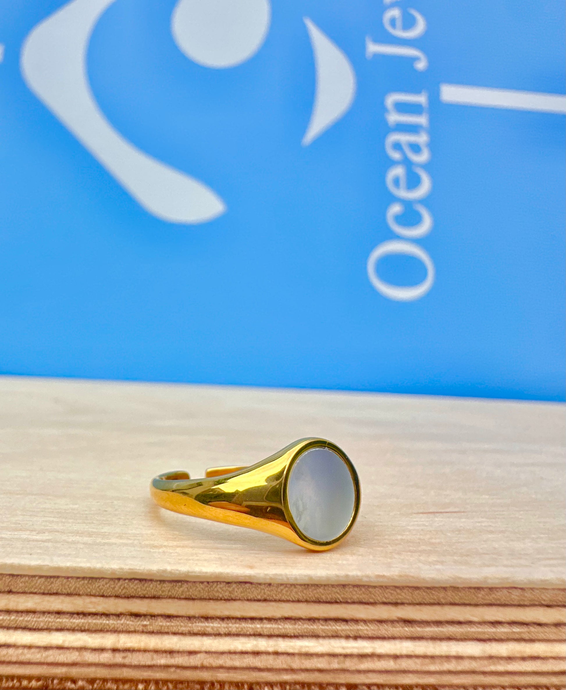 OceanJewels Pearl Shell Signet Ring is made from high-quality stainless steel Premium Plated in Real 18K Gold! Making it fully waterproof, tarnish-proof, and guaranteed to last a lifetime! Wear it anywhere! In the sea or shower without ever taking it off. 🌊