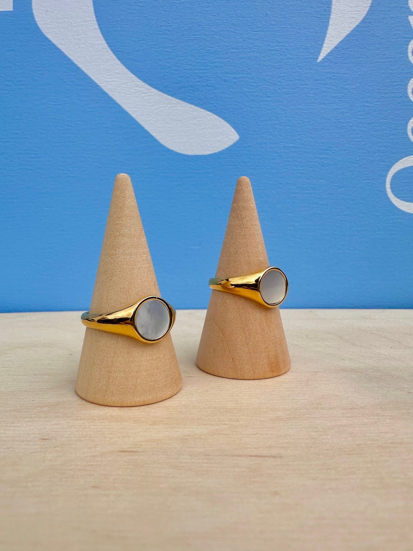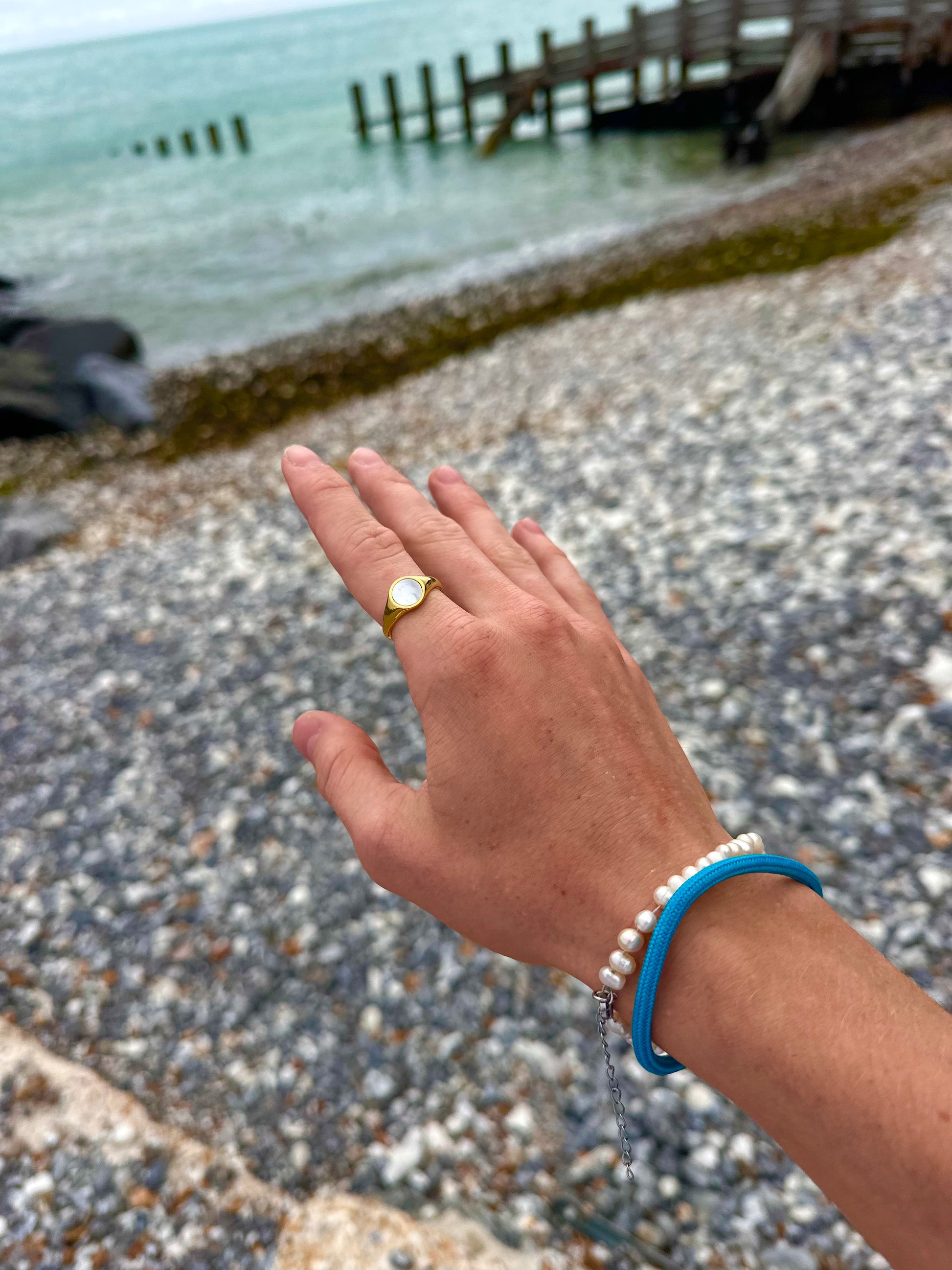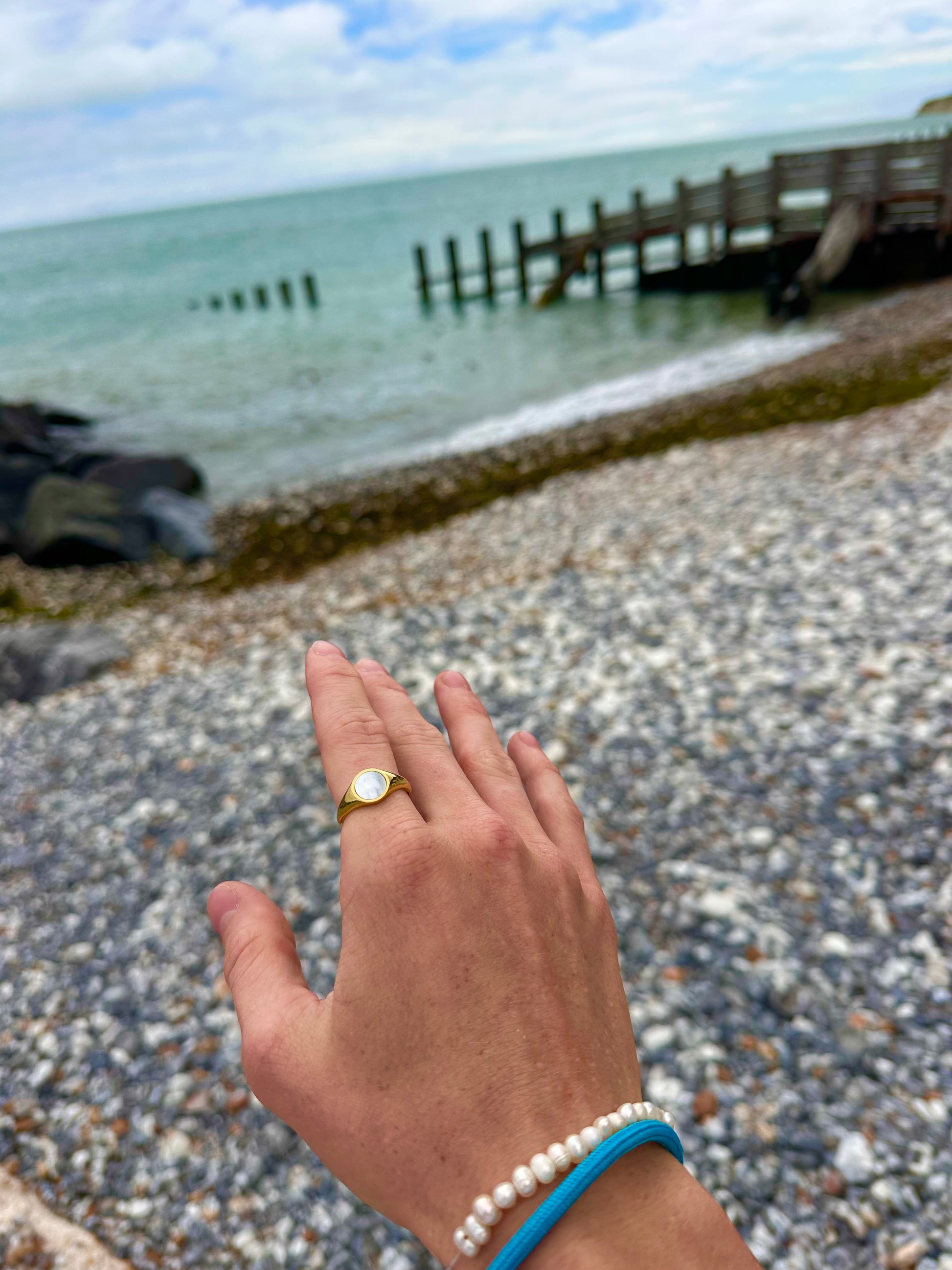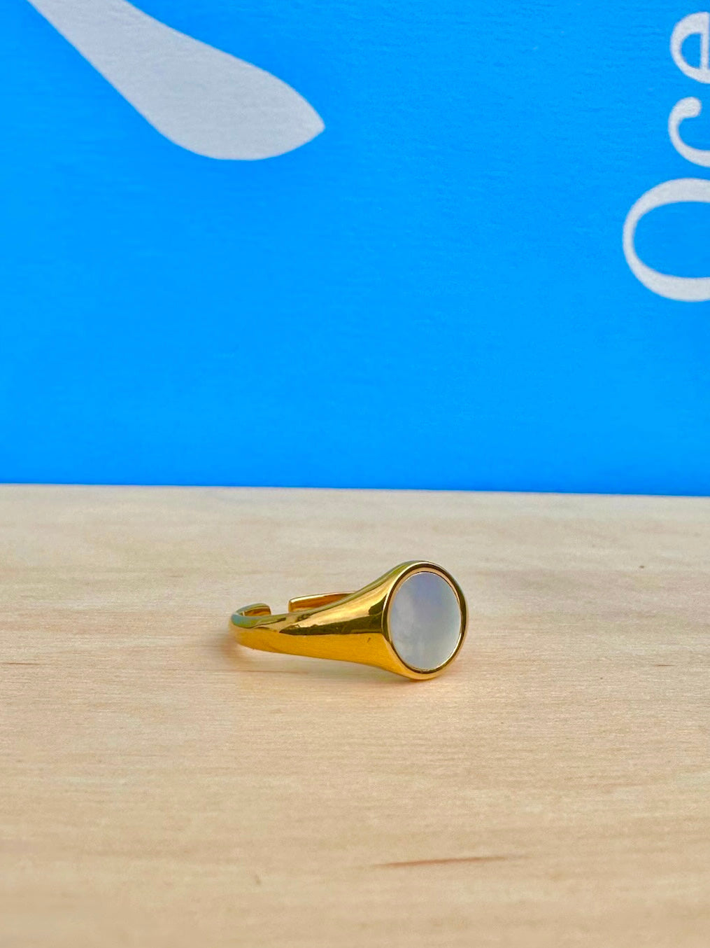OceanJewels Pearl Shell Signet Ring is made from high-quality stainless steel Premium Plated in Real 18K Gold! Making it fully waterproof, tarnish-proof, and guaranteed to last a lifetime! Wear it anywhere! In the sea or shower without ever taking it off. 🌊