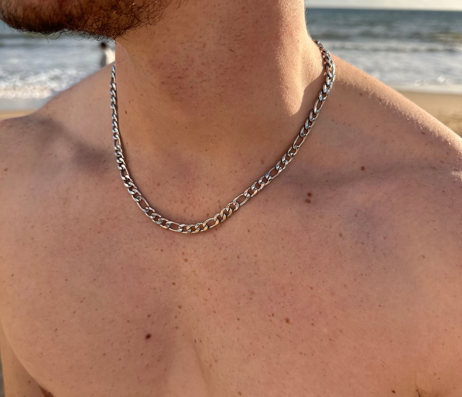 A perfect day to day chain offering style and comfort. Great gift for men. OceanJewels Figaro Chain is guaranteed to never fade nor tarnish.