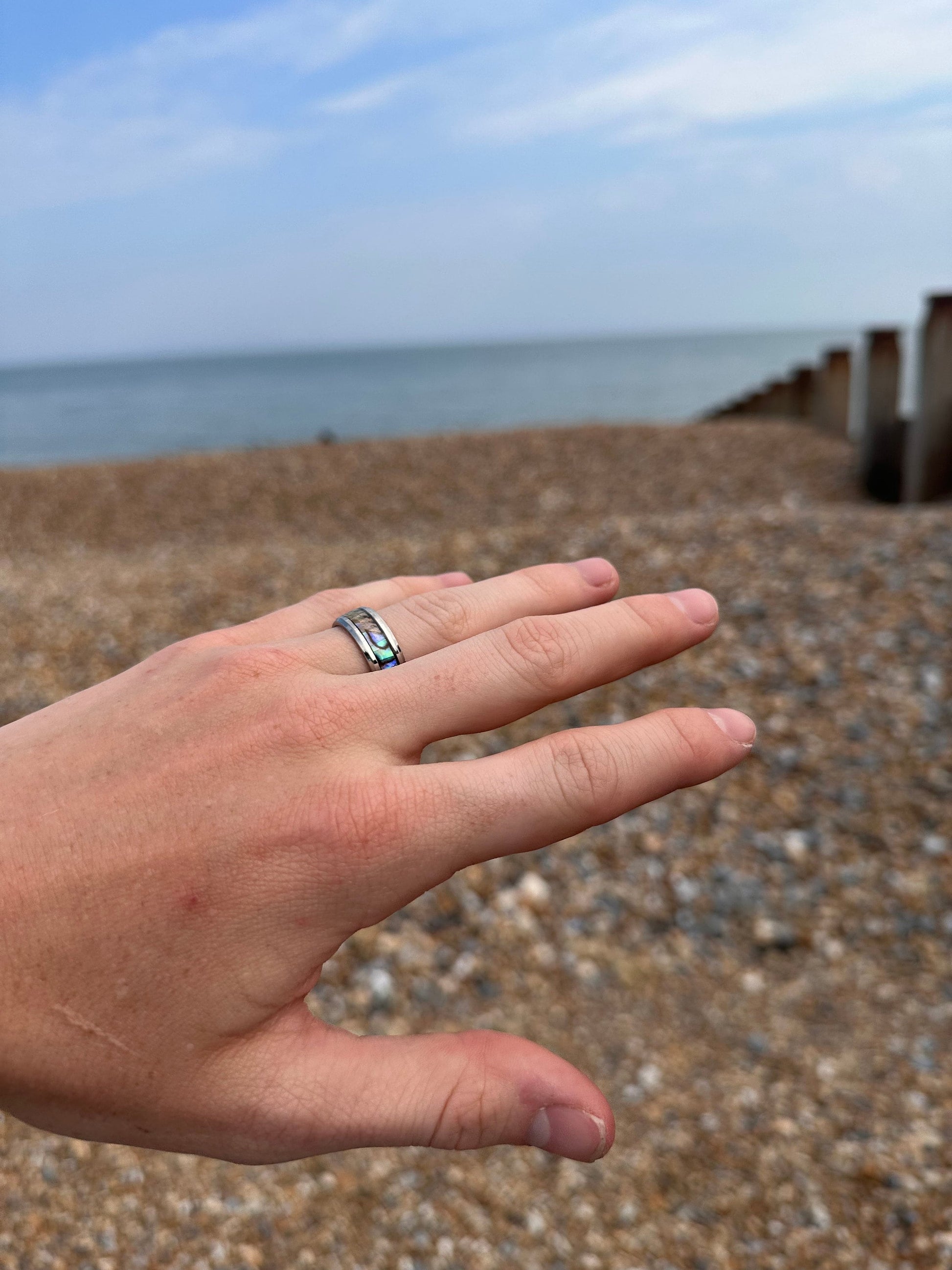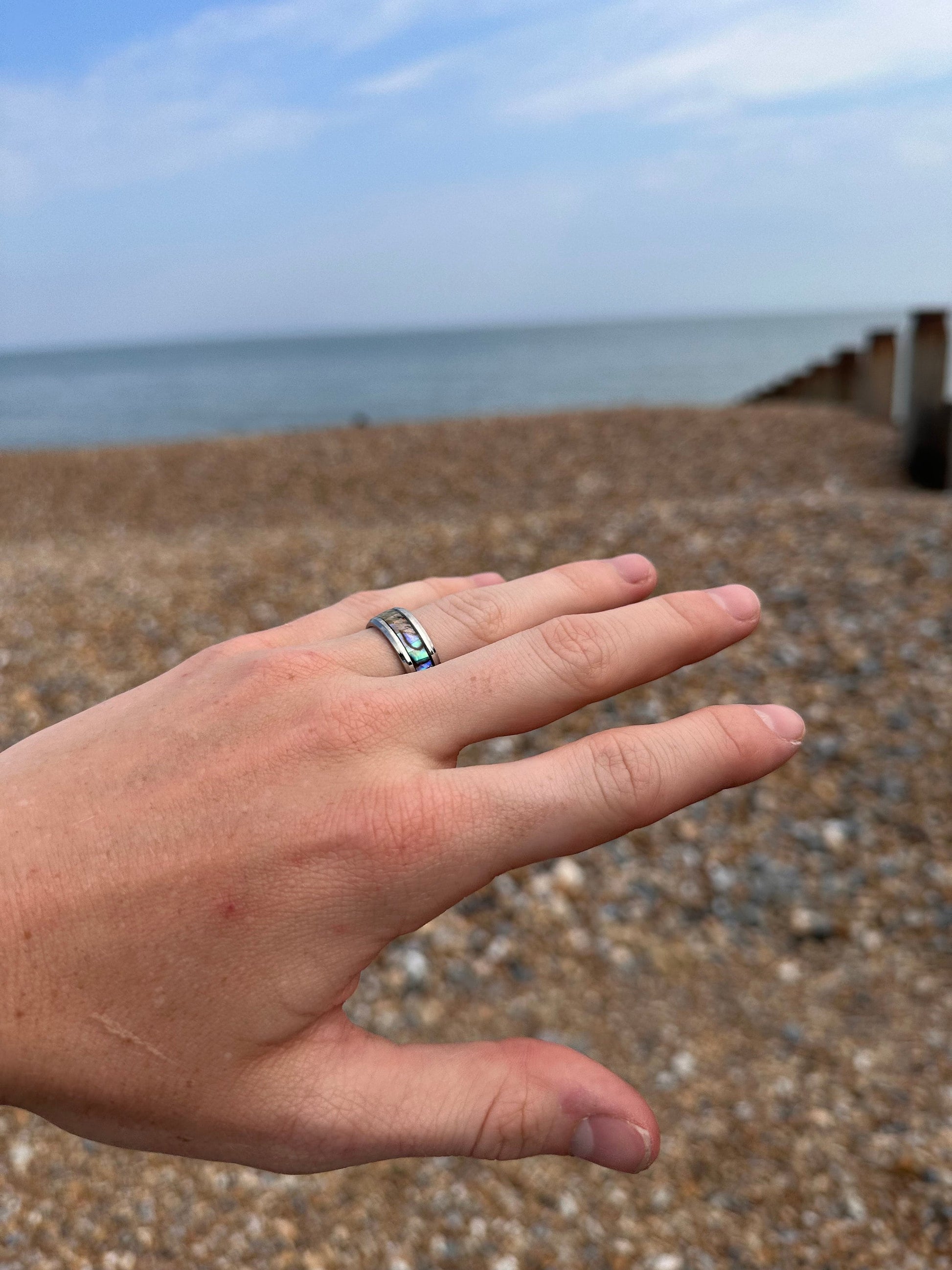 Offering an extremely fashionable and well crafted Silver Ring combined with an Abalone Shell centre. A great piece to wear with passion providing a stylish look.