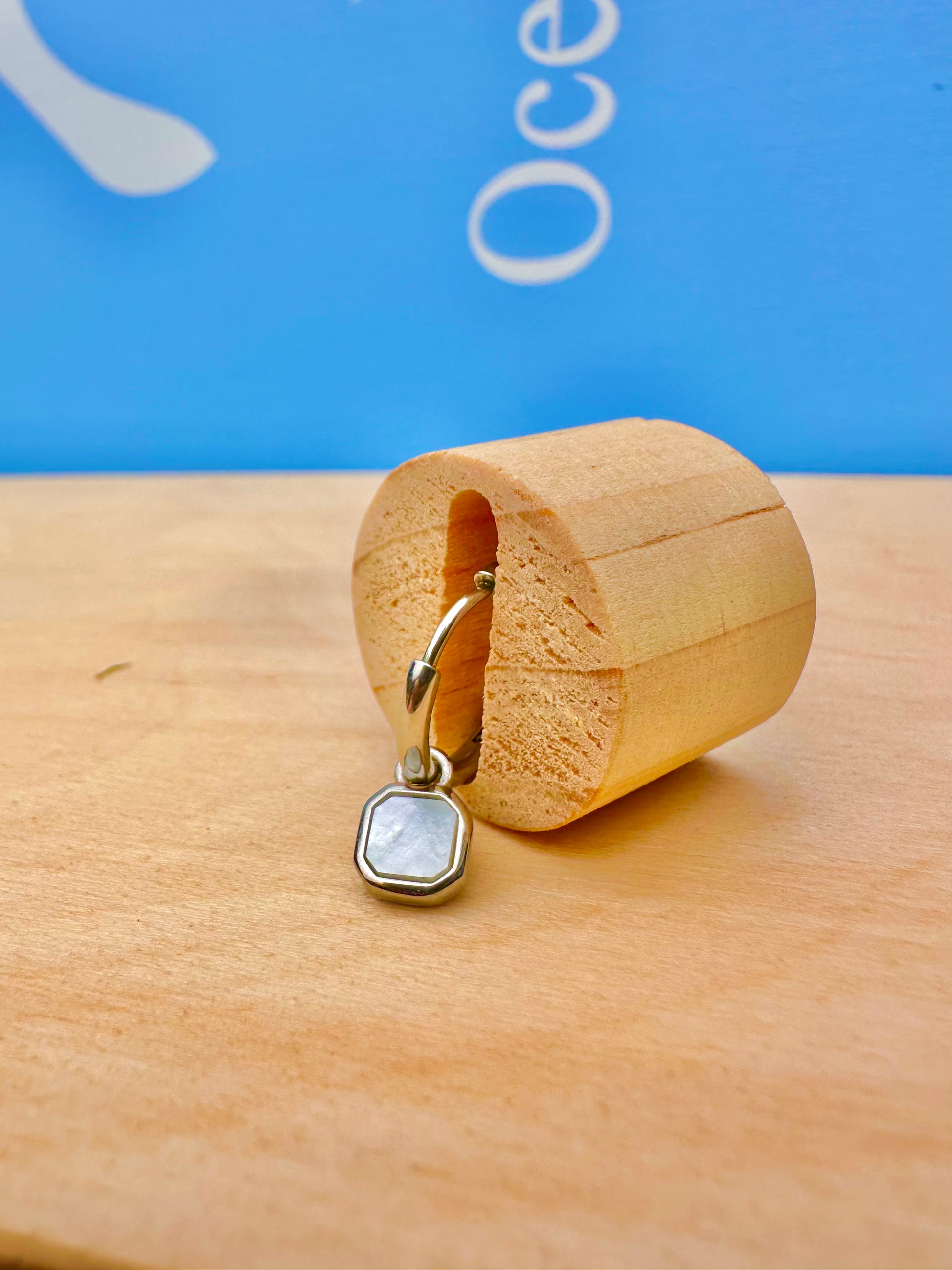 This item contains two earrings, one for each ear and the stone is 100% natural Pearl Shell, with a lovely white Iridescent finish on the stone.