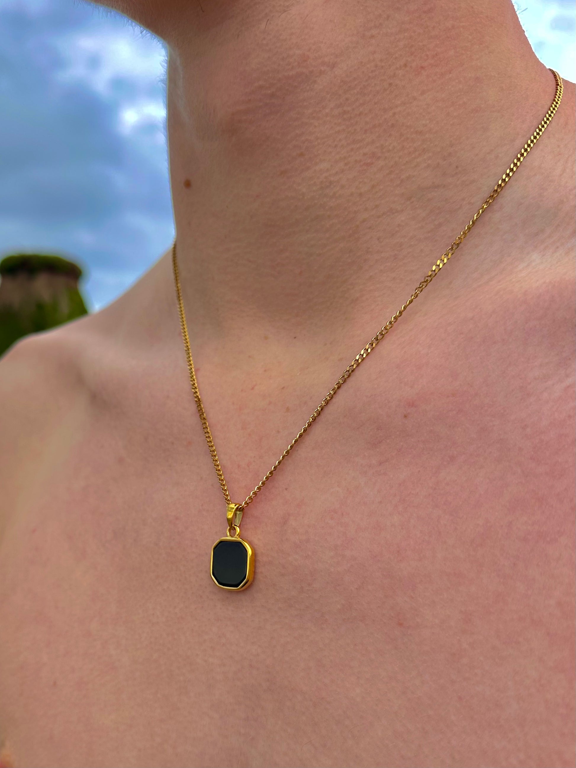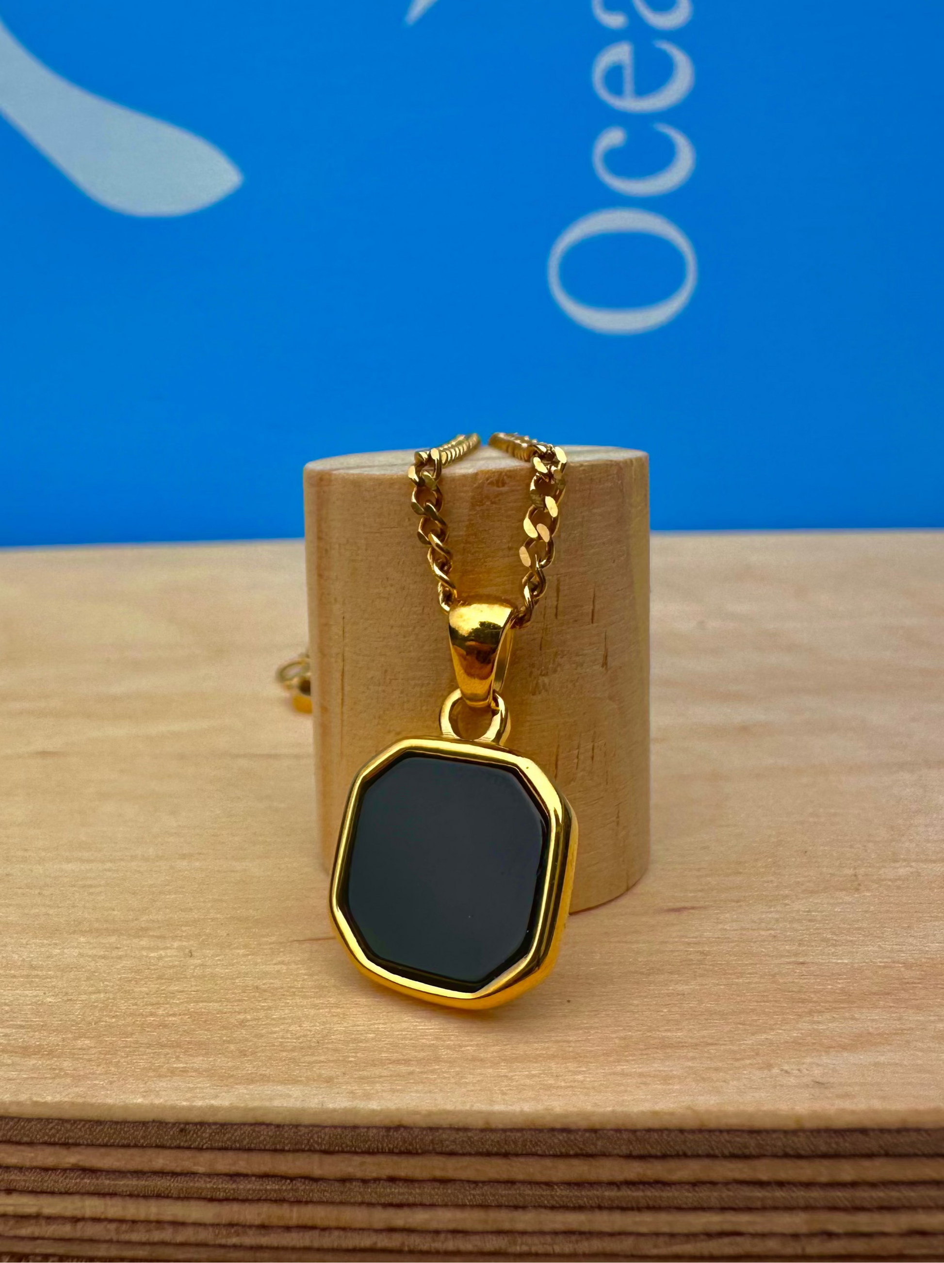 OceanJewels Black Onyx Gold Stone Pendant is made from high-quality stainless steel with premium 18K gold plating, making it fully waterproof, tarnish-proof, and guaranteed to last a lifetime! Wear it anywhere! In the sea or shower without ever taking it off. 🌊