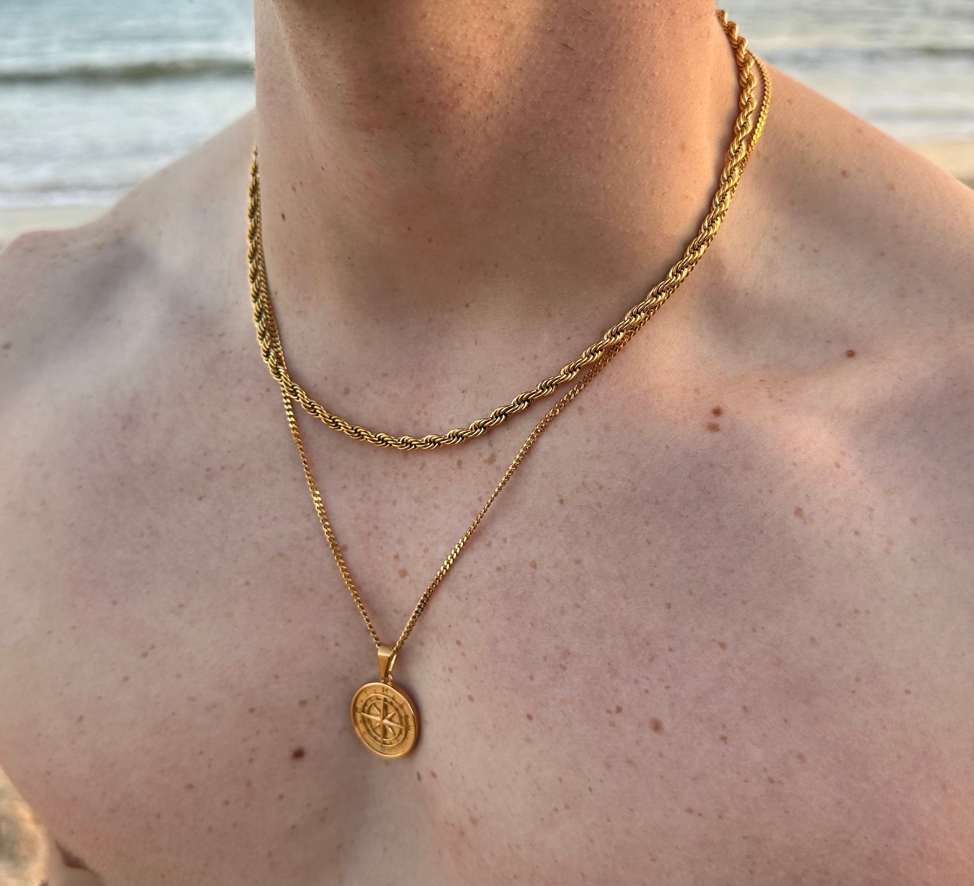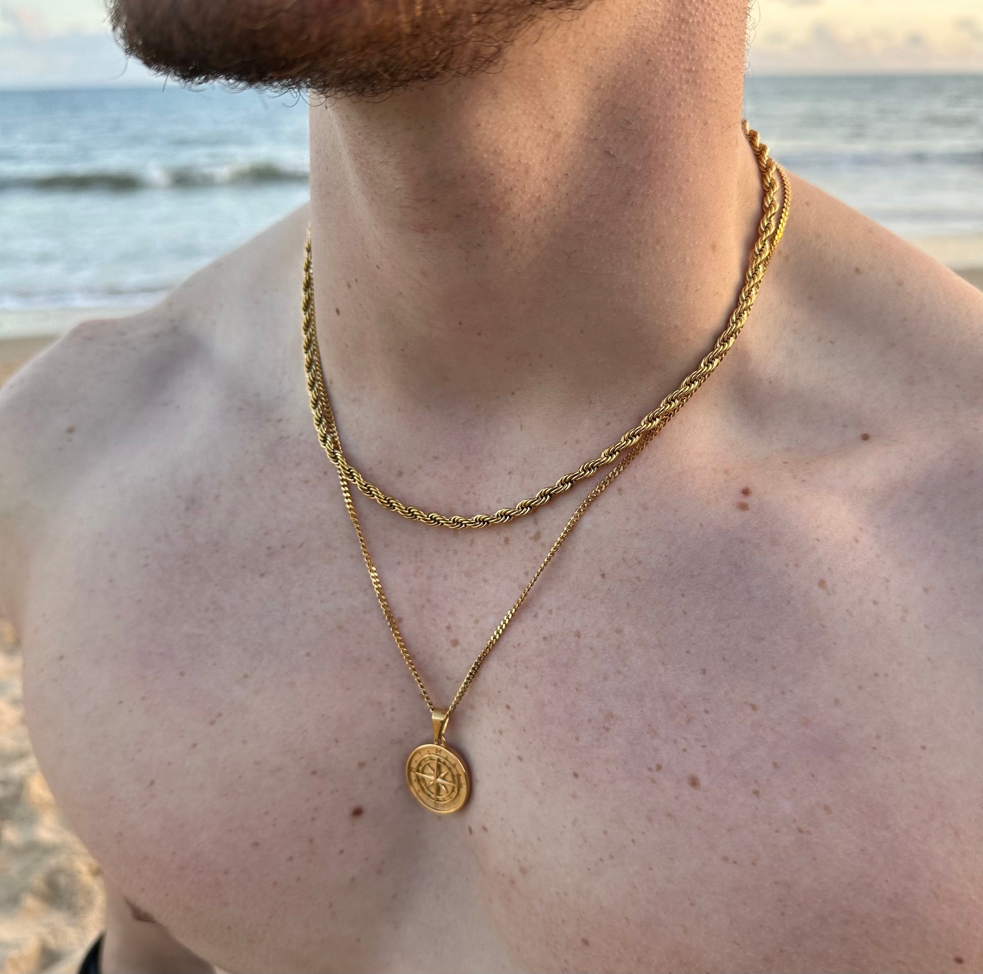 The perfect Two chain set with a 20” 4MM Rope chain and a compass pendant on the chain of your choice. As shown in photos.