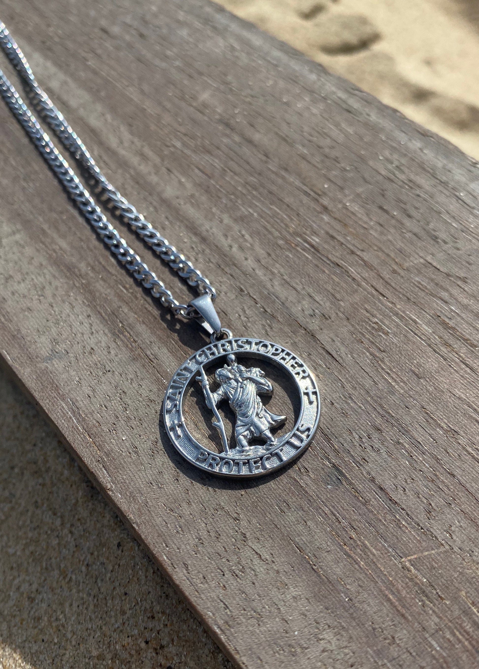 St. Christopher necklaces are worn as a symbol of safe travel and protection. And since St. Christopher saved travelers from a watery death, mariners wore Saint Christopher medals for protection and safe passage at sea.