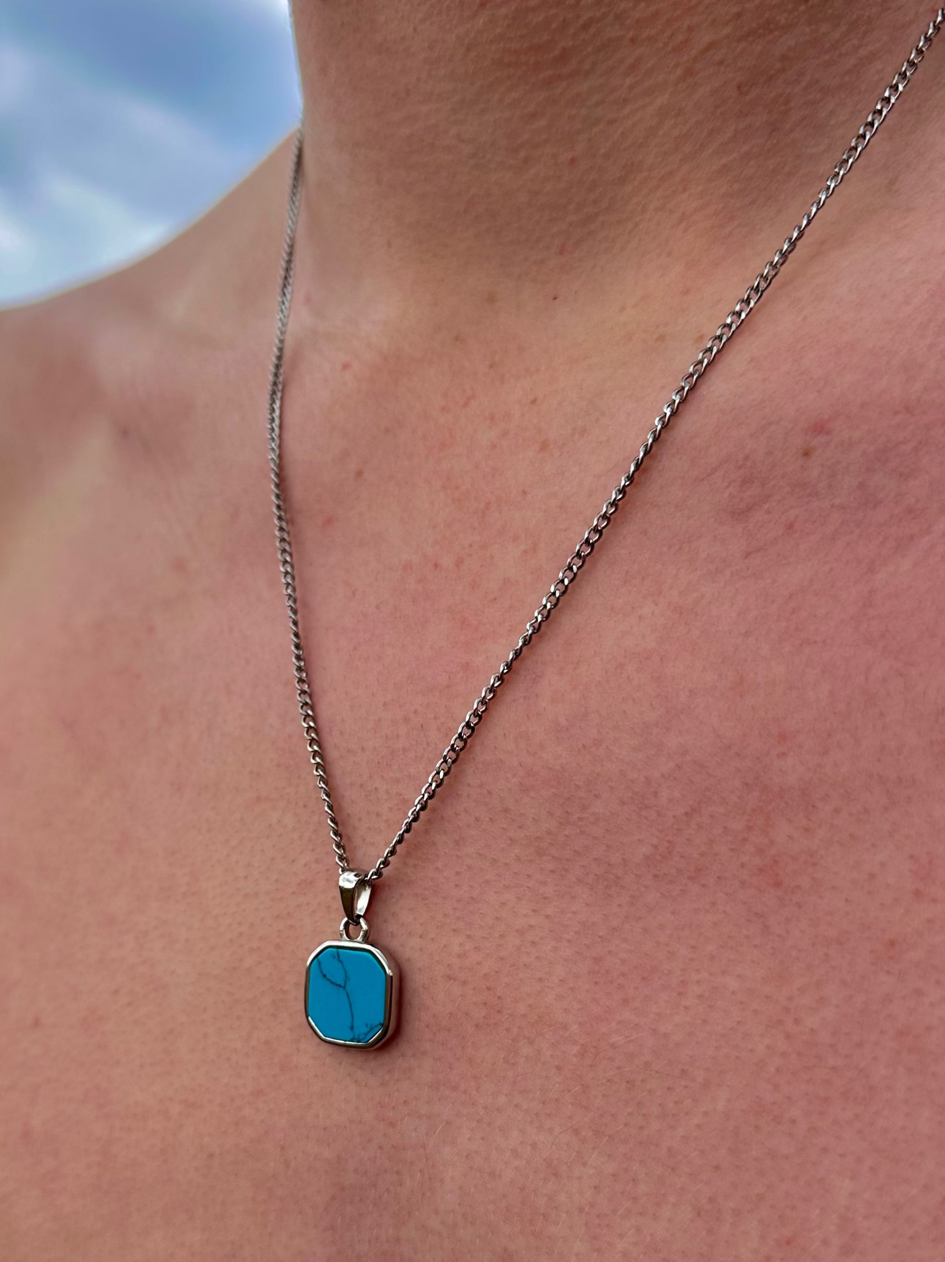 OceanJewels Silver Turquoise Pendant Necklace is made from high-quality stainless steel, making it fully waterproof, tarnish-proof, and guaranteed to last a lifetime! Wear it anywhere! In the sea or shower without ever taking it off. 🌊