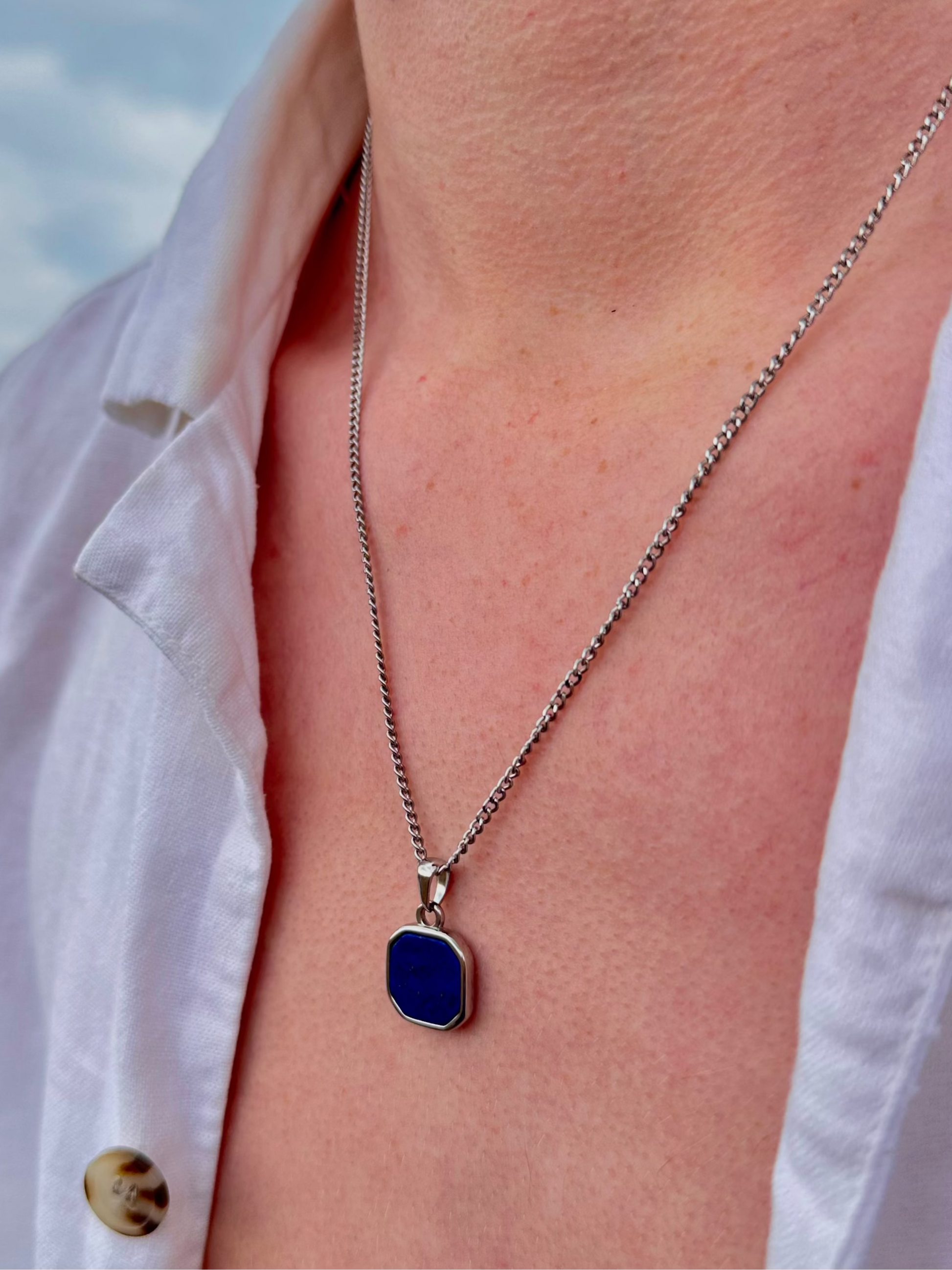 OceanJewels Silver Lapis Lazuli Pendant Necklace is made from high-quality stainless steel, making it fully waterproof, tarnish-proof, and guaranteed to last a lifetime! Wear it anywhere! In the sea or shower without ever taking it off. 🌊